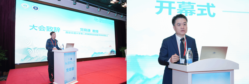 会议开幕式由专委会主委、交大二附院运动医学科主任时志斌教授主持。陕西省中西医结合学会李玉明会长率先致辞,他对大会的顺利召开表示热烈祝贺,高度肯定了近年来我省运动医学学科在关节镜技术革新、运动损伤防治体系构建、康复一体化发展等领域取得的丰硕成果,并对本次年会搭建的学术交流平台给予高度评价,衷心预祝大会圆满成功。随后,交大二附院运动医学科学术带头人党晓谦教授发表讲话,对远道而来的省内外专家同仁表示诚挚欢迎,他表示,希望以此次年会为纽带,凝聚行业智慧、共享前沿成果,助力陕西省运动医学学科高质量发展。中华医学会运动医疗分会全国常委郑江主任随后发言,他展望了运动医学领域的发展前景,指出当前学科正朝着精准化、微创化、康复一体化的方向加速迈进,本次会议为广大同仁搭建了优质的交流桥梁,将有效促进技术共享与经验互通,助力全国运动医学领域协同发展。