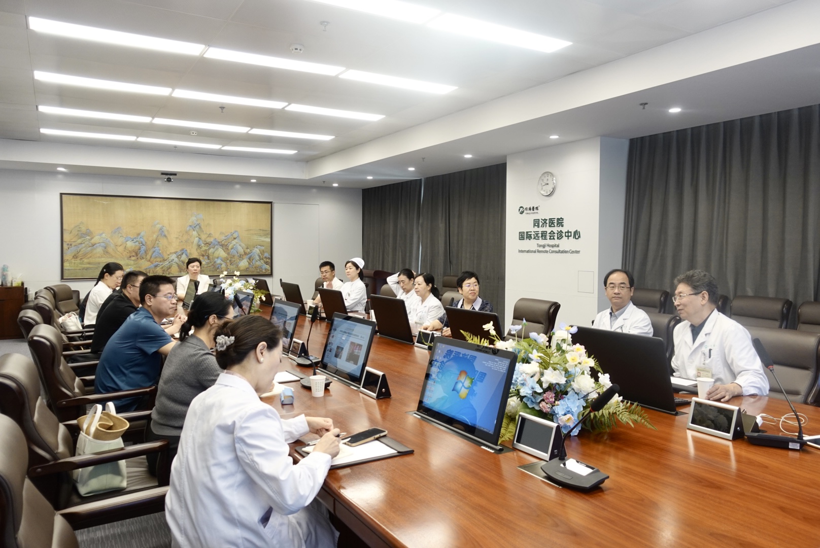 华中科技大学同济医学院附属同济医院院长助理、老年医学科主任、老年医学研究所所长、中华医学会老年医学分会候任主任委员张存泰教授及其团队郑凯副主任、糜涛副主任、夏秦副主任、张凌慧副主任、王玫总护士长等科室负责人对我院一行的到访表示热烈欢迎。张存泰教授就“紧密围绕八大中心建设,四大研究方向全面开展工作,建设具有中国特色的老年病科”分享了学科建设经验。随后双方就干部保健工作、医护能力提升、专业队伍建设、学术交流和技术推广等工作展开了深入讨论。会后参观了同济医院老年医学科标准化血管衰老管理中心、健康管理中心、老年危重症救治中心、老年医学营养示范中心、老年综合评估中心、老年脏器康复和睡眠中心、老年慢病“H2H”整合照护中心及老年围手术期评估和管理中心,并就日常工作中遇到的痛点、难点及堵点问题有针对性的进行了交流探讨,受益匪浅。最后,双方对未来国家老年医学中心联盟单位建设、临床队列研究平台、基础研究及资源共享等方面达成了初步合作意向。