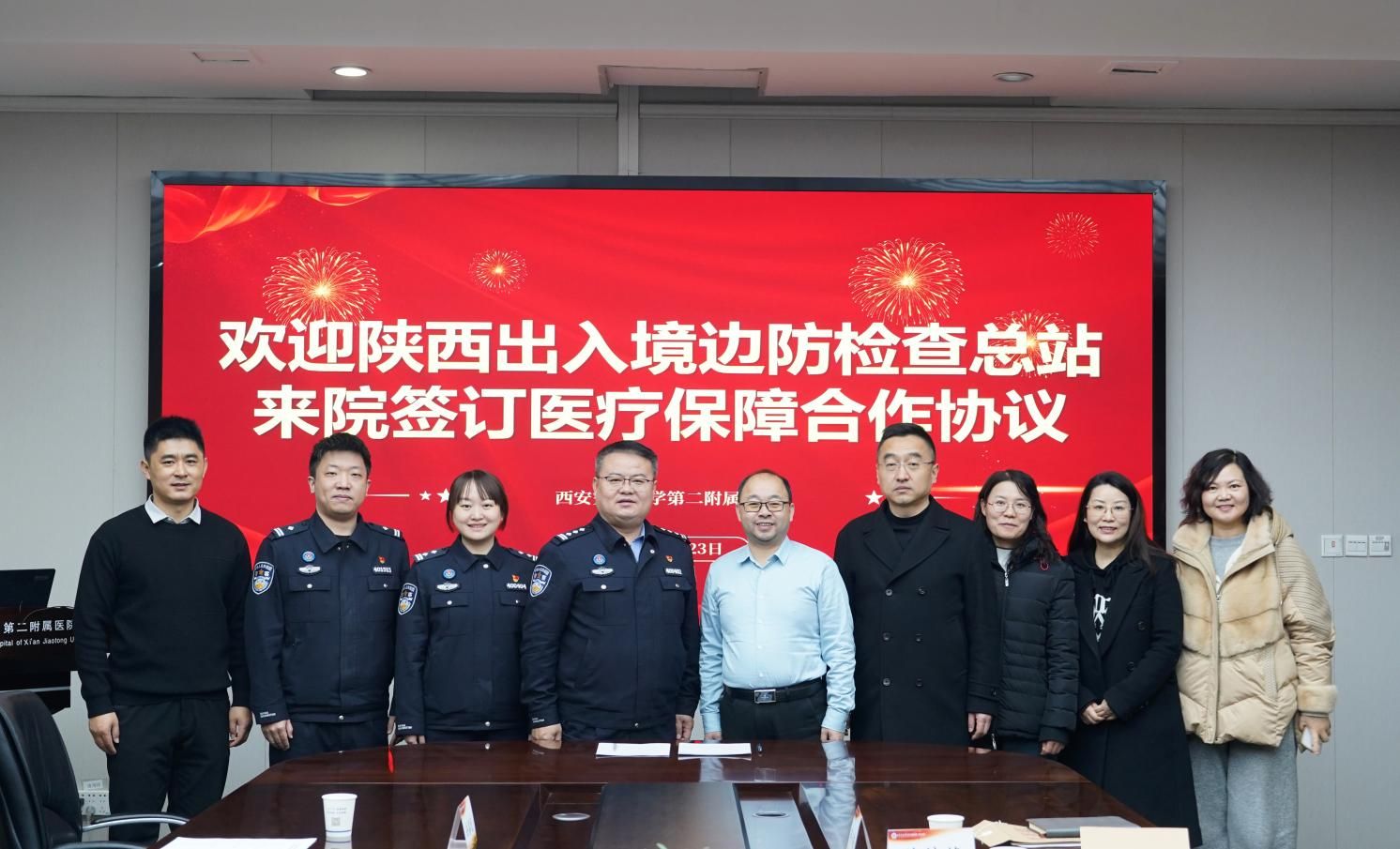 2026年1月23日上午,陕西出入境边防检查总站与交大二附院正式签订医疗保障合作协议。陕西出入境边防检查总站后勤保障处副处长惠海军一行,与交大二附院医务部常务副主任王虎清及相关科室负责人共同出席签约仪式。