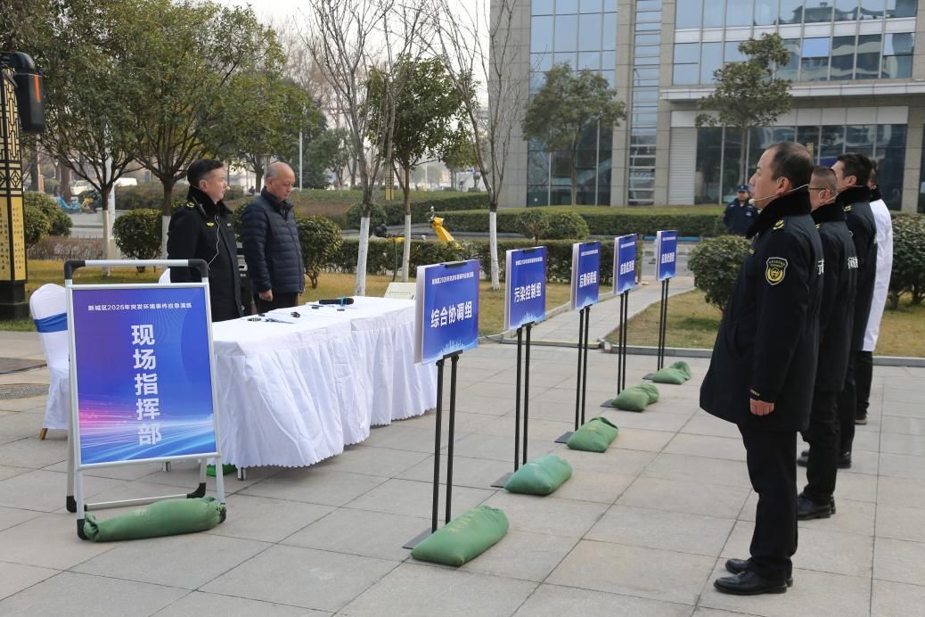 1月28日,以“联控废液污染 ,砺能守境安澜”为主题的新城区2026年突发环境事件应急演练在大明宫院区开展。本次演练由西安市生态环境局新城分局主办、我院协办,西安市生态环境保护综合执法支队、新城区应急管理局、自强路街道办、新城区消防救援大队、自强路派出所等单位参演。演练以医院废液泄漏为模拟场景,围绕“前期响应-协同处置-驰援保障”全链条开展实操,通过实战检验预案可行性、部门协同性及处置专业性,为院内应急管理体系优化提供实践支撑。