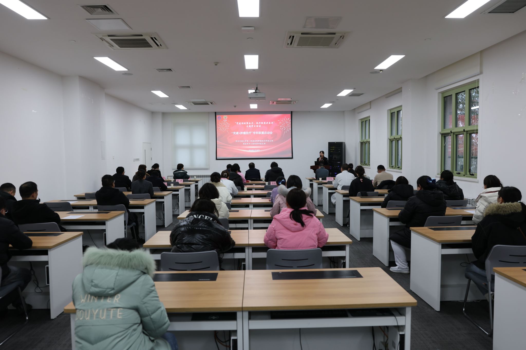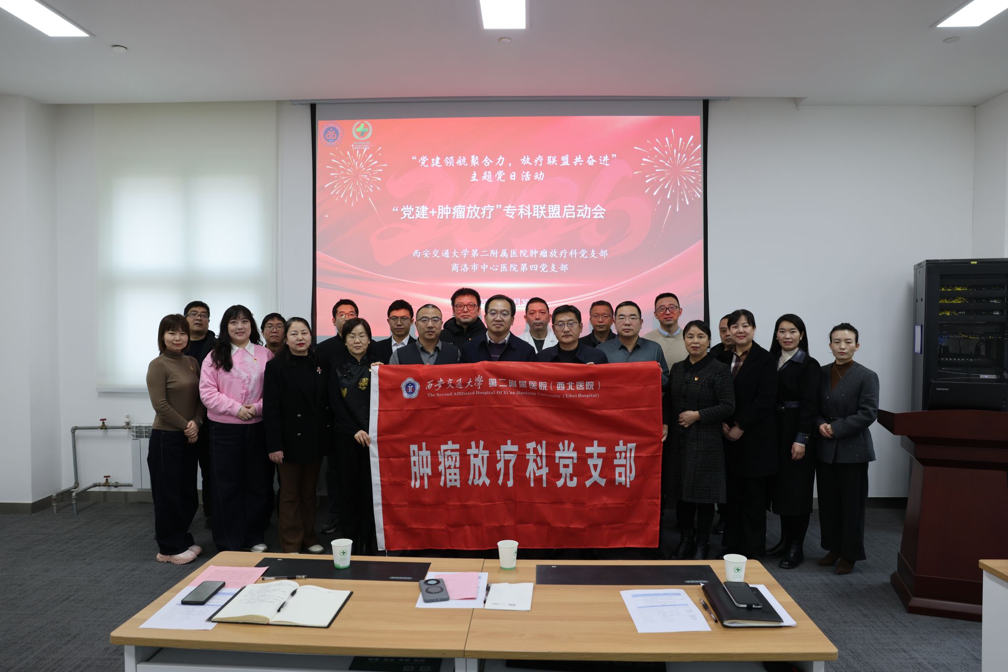 为深化党建引领作用,推动医疗业务融合发展,2026年1月30日,西安交通大学第二附属医院肿瘤放疗科党支部一行5人与商洛市中心医院共同举办了“联盟共建、守护健康”主题党日活动暨“业务联动、携手共进”学术交流会。此次活动以党建为纽带,旨在加强两院支部间的交流合作,促进优质医疗资源下沉,提升区域肿瘤诊疗水平。