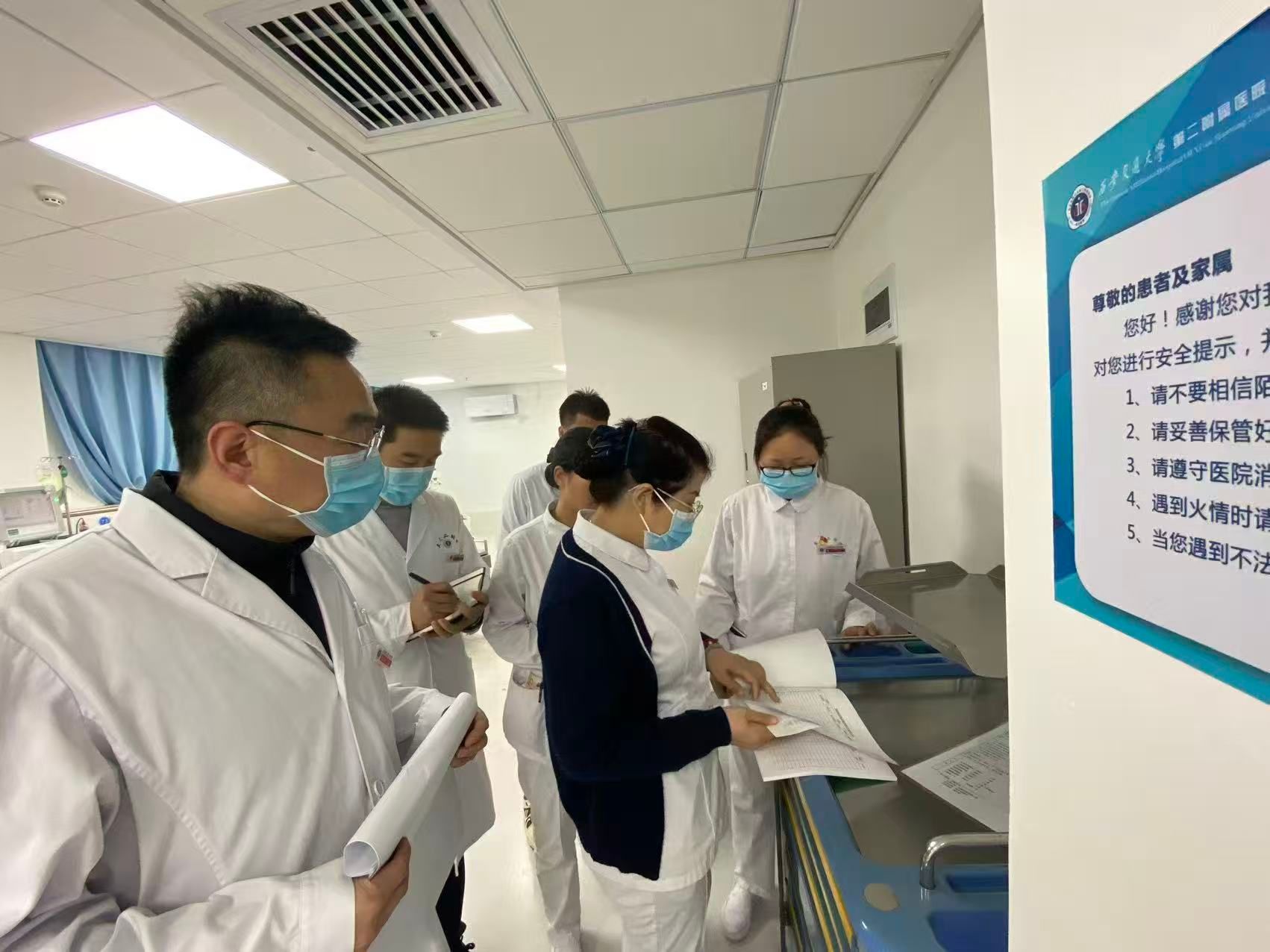 随后,全体院领导分组带队前往临床医技科室,深入临床一线、后勤班组、重点场所,看现场、查记录、问情况、验能力。各检查组认真听取临床一线科室的意见和建议,对发现的隐患问题,能整改的马上整改;一时难以整改的,要求制定防范措施和应急预案,限期整改到位,并列入问题清单后续跟进。