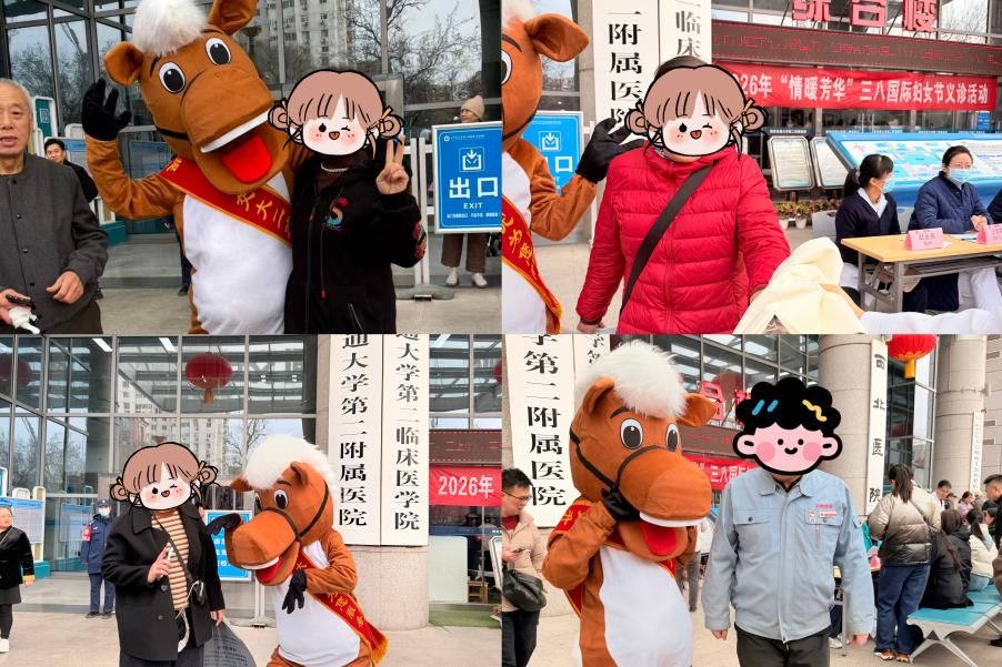 今年妇女节活动最让人眼前一亮的,莫过于位于门诊楼前的“吉祥马儿”互动打卡区。这匹憨态可掬、寓意“马到成功”与“马上健康”的吉祥物人偶一亮相,便成为全场的焦点。