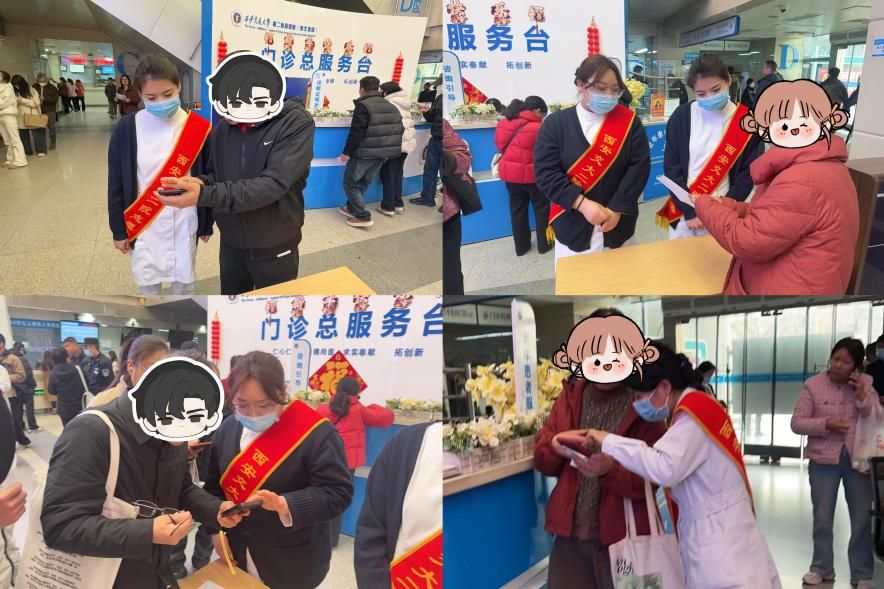 在熙攘的人群中,一抹抹“志愿红”格外引人注目。由门诊党、团支部成员组成的“爱心接诊”志愿服务队穿梭在自助机与诊室之间。她们耐心地协助老年患者操作手机挂号,为行动不便的就诊者推来轮椅,提供细致的导诊与陪检服务。她们用脚步丈量着门诊的每一个角落,用实际行动诠释着“以患者为中心”的人文关怀。