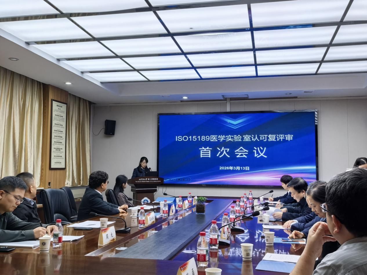 2026 年 3 月 13 日至 15 日,中国合格评定国家认可委员会(CNAS)ISO15189 医学实验室认可评审专家组莅临我院,开展为期三天的现场复评审及换证评审,我院医学检验科凭借规范的质量管理体系与过硬的技术能力顺利通过,工作成效获专家组一致认可。