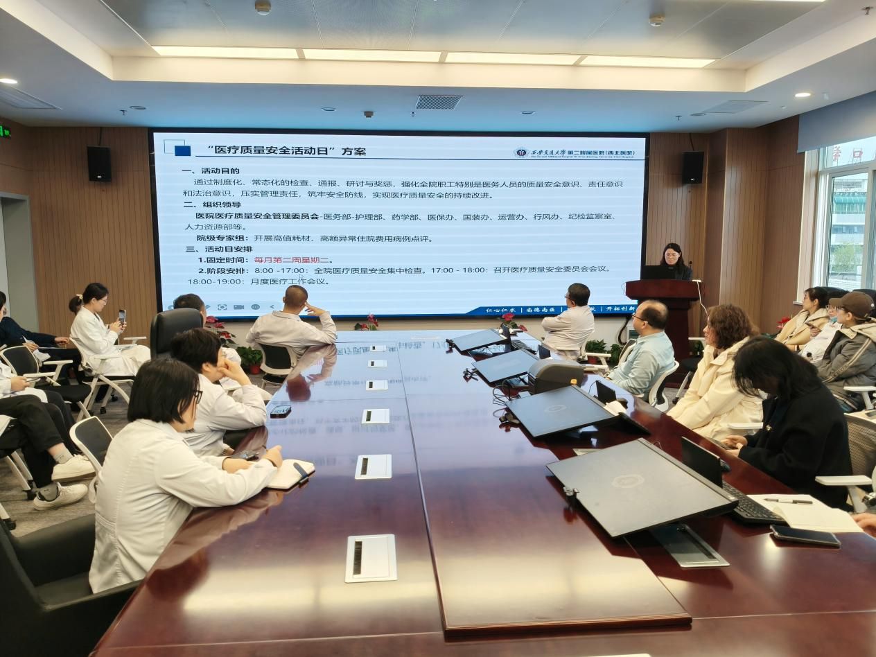 会议还对下个月医疗质量安全工作重点进行了部署,包括设置手术关键节点预警机制、开展高值耗材点评专项工作、规范临床超声应用、提升四级手术病历内涵等。