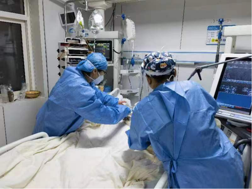 除了承担院内急危重症患者救治任务,科室还要时刻准备为省部级医院分区包片工作负责的片区医院“兜底”。一日下午,一位高龄患有慢阻肺、呼吸衰竭合并新冠肺炎患者从基层医院紧急转院至我院抢救,科室立即开通绿色通道,将患者收治进ICU病房,在医护团队24小时的精心治疗下,老人终于脱离了生命危险。一个月内,有10余例急危重症患者紧急转入呼吸与危重症医学科,均得到了有效救治。