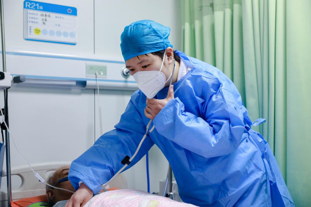 柯蕊医生在给新冠患者行经支气管镜吸痰