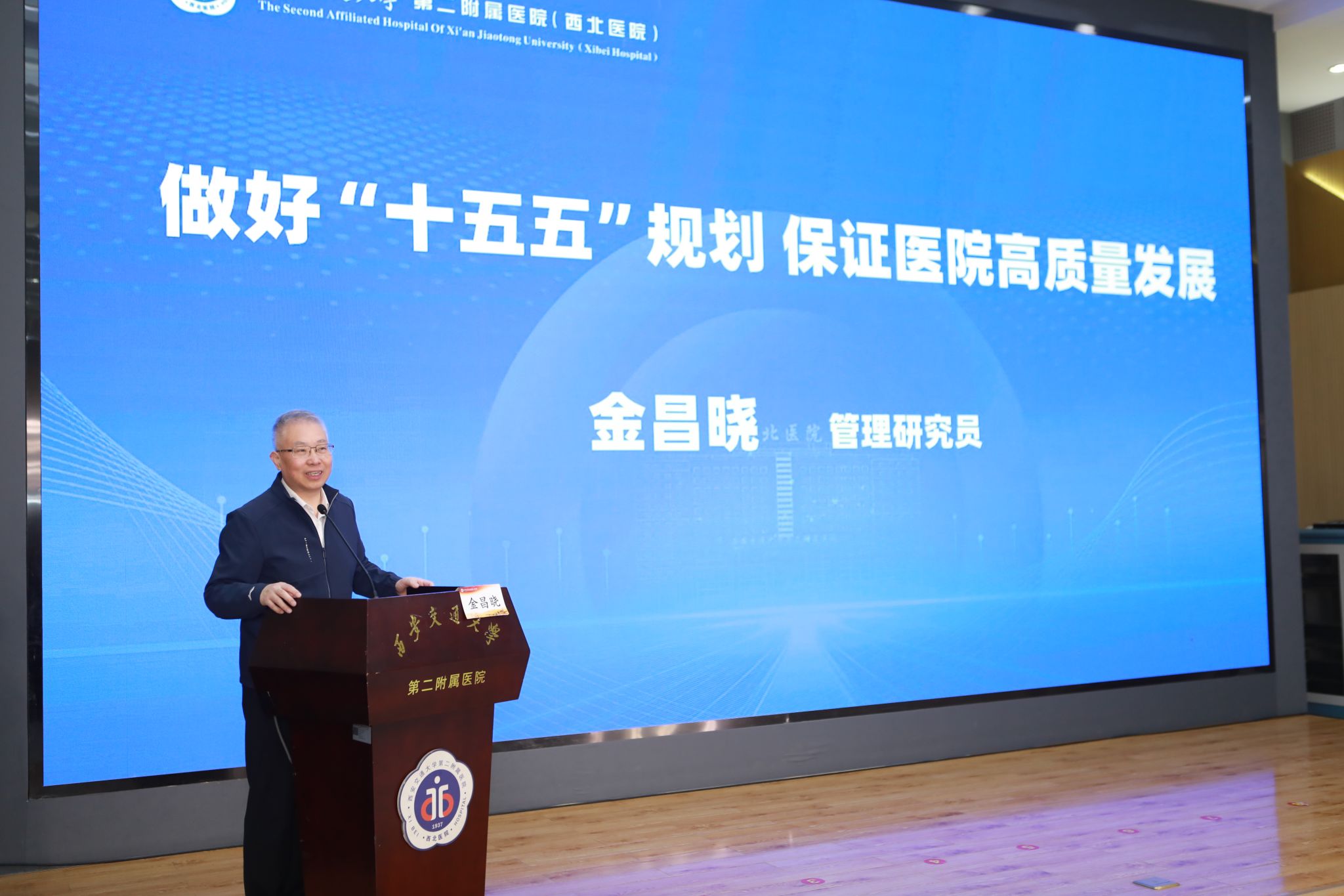 在专家报告环节,金昌晓书记作了题为《做好“十五五”规划 保证医院高质量发展》的报告。金书记长期深耕医院管理一线,在医院党建、运营管理、绩效考核、信息化建设等方面经验丰富。他从国家宏观政策导向、北医三院的实践探索、医院发展规律以及战略落地路径等维度,深入阐述了“十五五”规划的内在逻辑与实施要点。沈群红教授带来《“十五五”战略下公立医院高质量建设与发展路径探索》的专题分享。作为公共管理与健康政策领域的知名学者,沈教授以扎实研究和独到视角,结合西安交大二附院的实际情况,深入剖析了公立医院在“十五五”战略下的发展逻辑与实践方向,为与会者提供了极具启发性的理论指引。