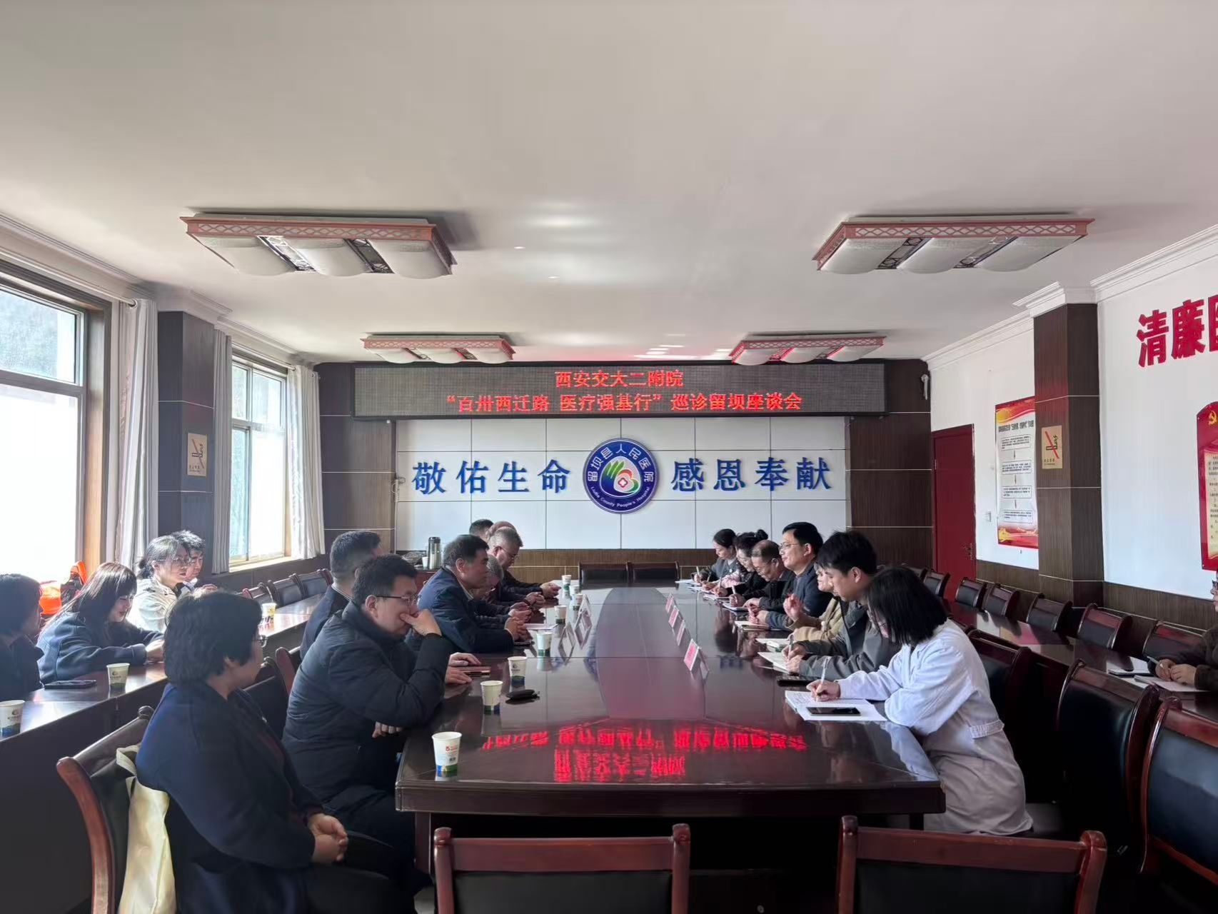 义诊查房结束后,两院召开交流座谈会。留坝县人民医院各学科代表结合实际工作,就技术提升、学科建设、人才培养等方面提出问题与思考。交大二附院专家逐一回应,分享诊疗思路与管理经验,现场交流务实深入。