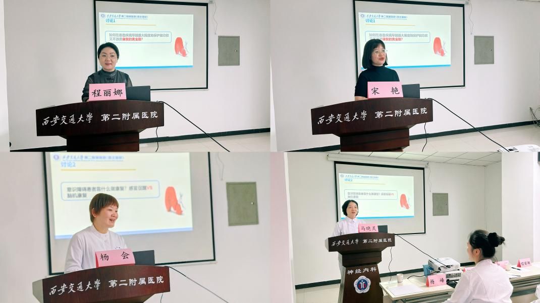 本次活动旨在夯实康复护理专业根基,提升临床康复护理质量,促进多学科(MDT)资源融合。来自西安工会医院、空军军医大学第二附属医院及我院的护理与康复领域专家齐聚一堂,围绕重症脑血管病术后康复护理的临床实践展开深入研讨。