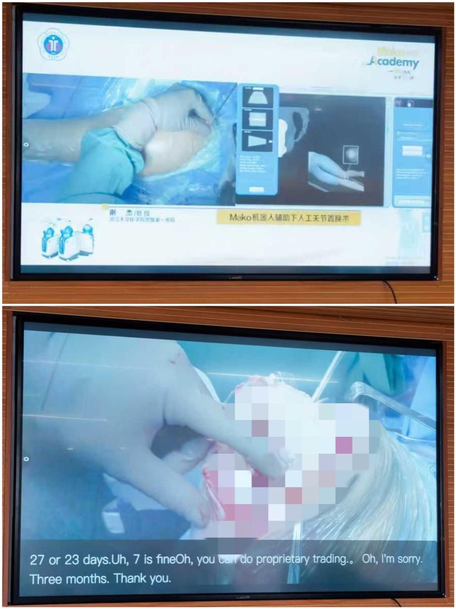 手术演示环节是本次参访班的核心亮点,旨在让学员们直观感受Mako智慧机器人的精准操作魅力,提升临床实操能力。西安交通大学第二附属医院关节与足踝外科专家团队精心筛选了髋关节、膝关节置换典型病例,由王卫国教授、谢杰教授、杨佩教授以及田润教授等主刀,通过实时直播的方式,完整演示了Mako智慧机器人辅助关节置换的全流程。