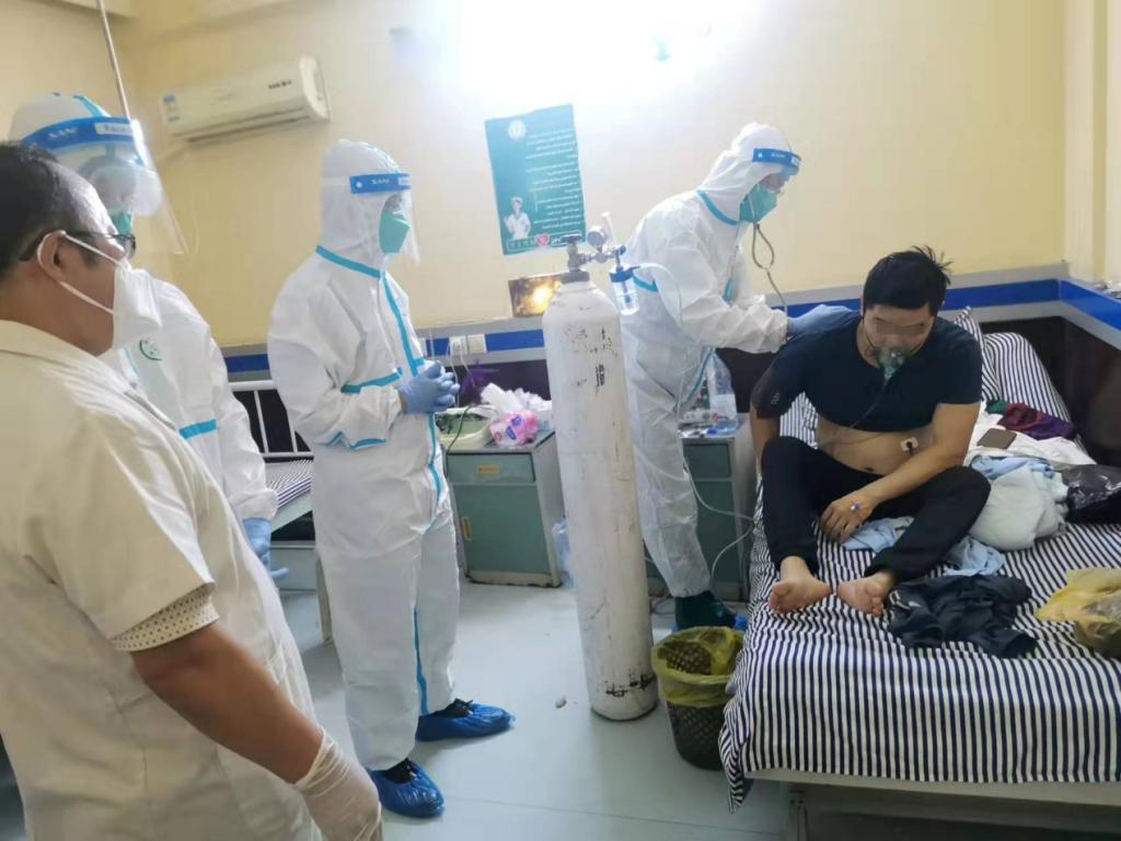 医疗队队长邢之景在接到任务后,立刻召开紧急会议。该患者集新冠肺炎、疟疾和伤寒传染病于一身,均为急性期,传染性较强,同时处于呼吸衰竭状态,血氧饱和度难以维持正常水平。队长根据医疗队人员配置及专业情况,安排刘重霄副队长、杨屹和刘海三位专家前往,并嘱托在及时救治患者的前提下,携带好防护用品,做好自身防护,保证安全。由于苏丹夜间街头常有军警持枪查检车辆,为策安全,再急调当地司机萨拉赫开车。