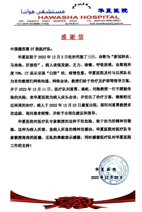 苏丹时间2022年12月11日晚7时许,位于恩图曼友谊医院驻地的第37批中国医疗队接到大使馆紧急任务,在苏丹华夏医院有一位重症患者,病情复杂危重,需要专家会诊并进一步救治。由于病情危急,时间紧迫,让医疗队自行商议安排人员,迅速前往。