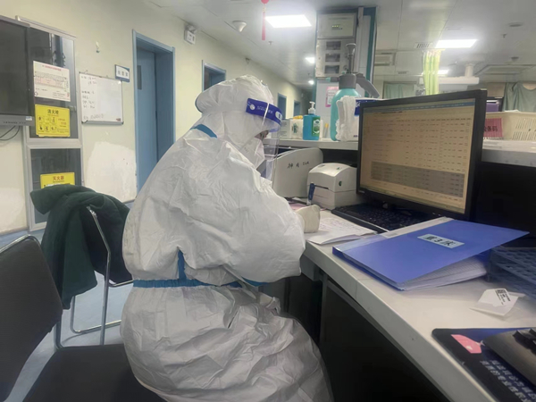 然而,回来后,医院的形式越加严峻,作为医护人员,我们将面临着更大的考验,大批的工作人员,我们的同事们都在接受新冠的洗礼,在岗医护人员严重短缺的同时,重症患者剧增。从榆林回来居家监测的第三天晚上,在医院的紧急派遣下我和重症的两位老师一起进驻西二楼一病区重症监护病房,当晚,就紧急收治了一名使用无创呼吸机的重症患者,经过一夜的奋战,患者终于病情平稳。两位老师虽是身经百战,但是面对病情紧急的重症患者,精神压力都非常大,思想时刻处于高度紧张状态。一起坚持了两个班以后,崔彦飞身体不堪重负,发烧复阳了,在此之前他刚刚感染过,身体还没有完全康复就回到了岗位上,我由衷的佩服他的敬业精神,在他身上,我看到了二院人的那种忘我精神。