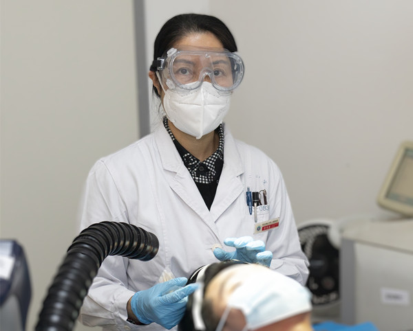 在疫情高峰之初,耿松梅主任即要求住院总配合做好线上皮肤门诊安排,为一些轻症及常见皮肤病患者提供线上诊疗问诊,尽最大限度减轻患者到院的感染风险;高晓敏护士长组织科室人员积极学习新冠治疗护理相关知识。
