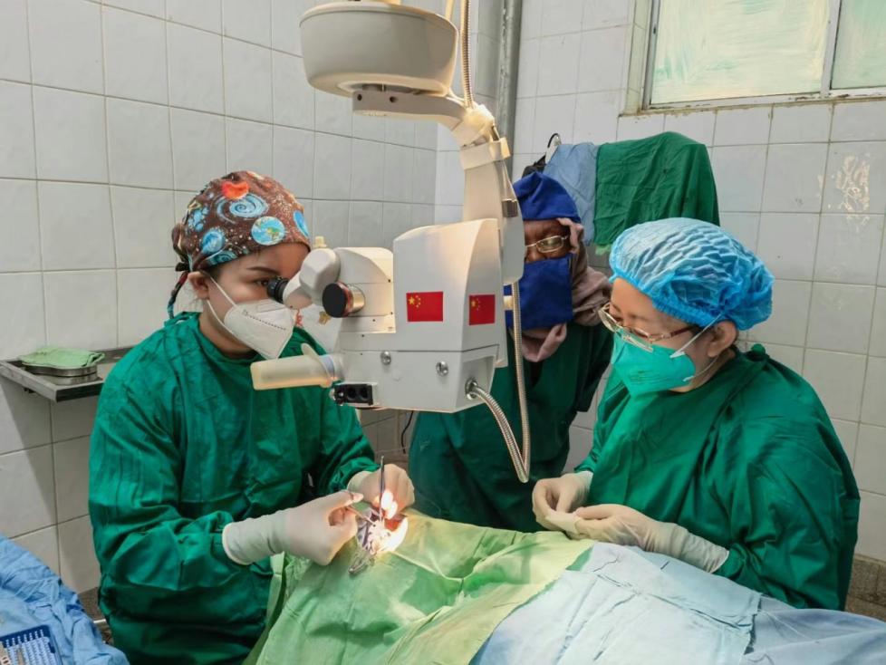 六月的一个清晨,恩图曼中苏友好医院眼科门诊的走廊里回荡着称赞声和欢笑声:“杜克突了C尼,修克兰结Z一兰!”、“过意思吉登!”----“中国医生,非常感谢你!”、“太棒了!”,患者一边说还一边不停地竖起大拇指,他们是我执行援外医疗任务的第一批做白内障超声乳化术的患者。在那一刻,激动的心情溢于言表,我为他们能重获光明而感到高兴,也为自己在这里克服了各种不便利因素,终于成功地完成了第一批的眼科手术而感到欣慰和自豪。