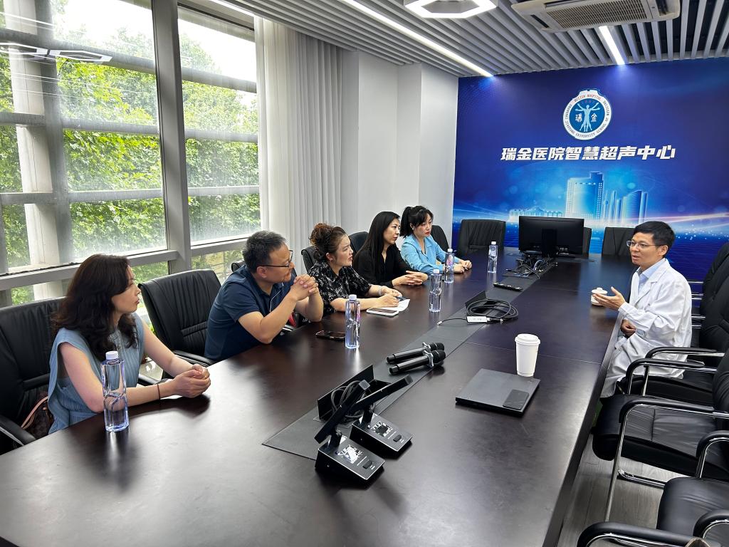 瑞金医院超声医学创造了国内浅表超声领域的多个第一,被誉为中国浅表器官超声的黄埔军校,特别在研究高泛化能力的甲状腺结节AI辅诊系统走在全国前列,周剑桥主任牵头发起了中国甲状腺与乳腺超声人工智能联盟。超声医学科团队参观了智慧超声中心设置、瑞金甲状腺多学科诊治中心,双方进行深入交流,讨论甲状腺疾病全周期智慧诊疗发展,如AI在结节穿刺、预后分析、智能随访等全周期诊疗中的应用。
