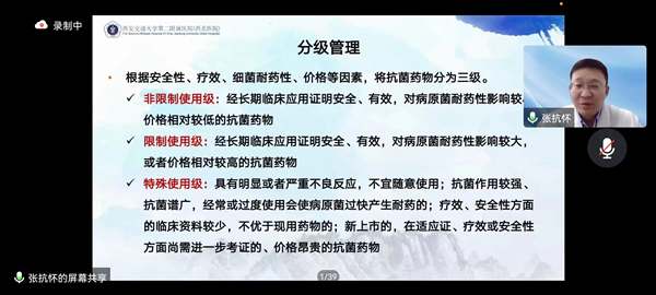 按照相关管理要求,我院组织了2022年度抗菌药物合理使用专项培训并进行考核。药学部张抗怀主任以“抗菌药物临床应用管理”为主题,从“抗菌药物管理法规、抗菌药物临床应用指导原则解读、抗菌药物临床应用管理要点解读、我院抗菌药物使用现状及省卫健委督查要求”四个方面,为临床医生解析抗菌药物应用的要点。