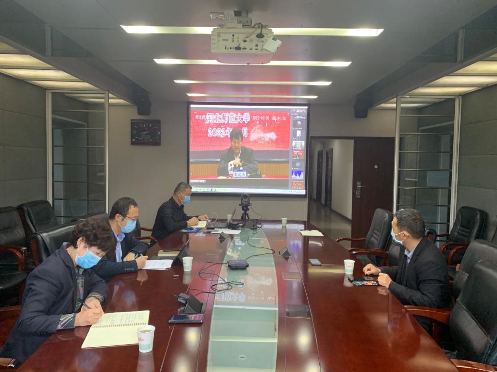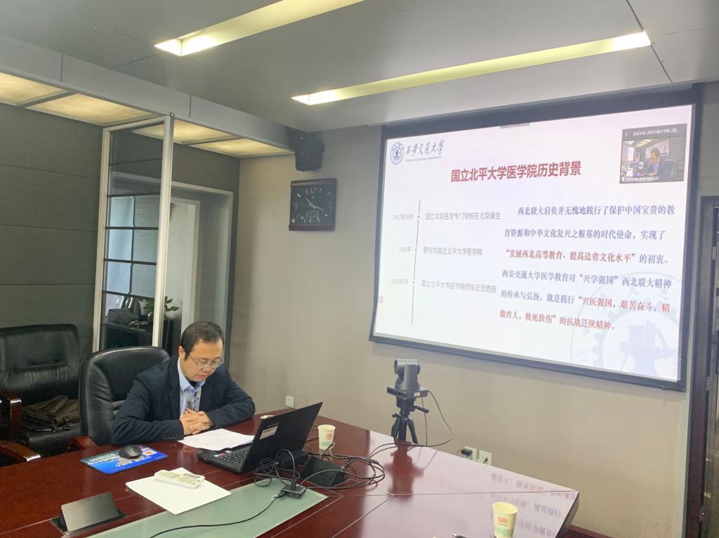 10月30日,由河北师范大学承办的第十一届西北联大与中国高等教育发展论坛以线上+线下相结合的方式举行。本届论坛以“赓续·历史·初心·创新”为主题,主会场设在河北师范大学,分会场设在各参会单位,来自与西北联大有学脉传承关系的高校和政府及有关单位的领导、专家、学者、教育工作者100余人线上参加了论坛。我校相关人员在二附院四楼会议室在线参会。医学部党委副书记陈晨在专家报告环节作了题为《赓续联大精神传承红色基因助力医学生成长成才》的主题报告。