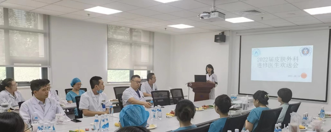 一段征程,一份收获,一份情谊。在第5个医师节来临之际,2022年8月19日中午,西安交通大学第二附属医院皮肤外科特为本期进修医生们举办了“2022届皮肤外科进修医生欢送会”。欢送会由皮肤外科组长程传涛主持,西安交大二附院皮肤科耿松梅主任、安金刚副教授、高晓敏护士长、孔淑贞副护士长、皮肤外科带教老师赵文伟、谭宣丰、贾方艳及10位进修医生等出席了会议。