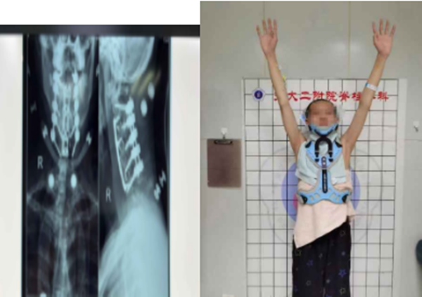 近日,我院骨二科成功为15岁的小患者实施了颈椎后凸截骨矫形术,目前患者恢复良好,术前的双上肢麻木无力等症状明显改善,已下床进行康复锻炼,并已于日前出院。