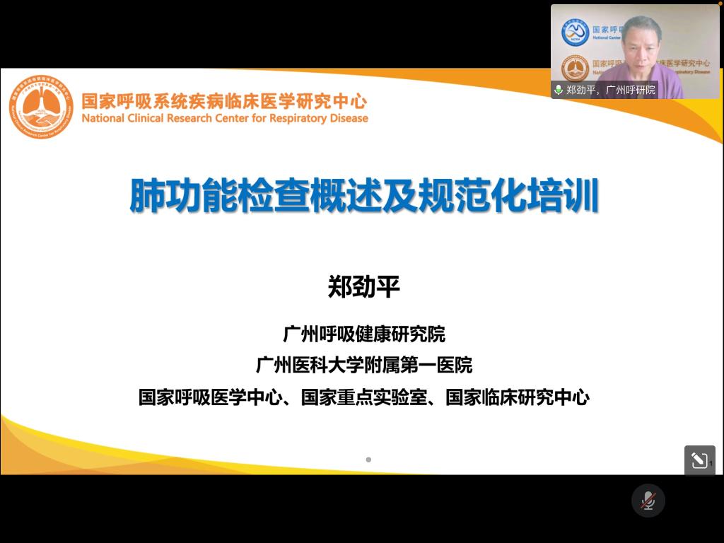 理论授课环节,首先由郑劲平教授根据自己丰富的临床经验及众多科研成果讲述了“肺功能检查概述及规范化培训”。