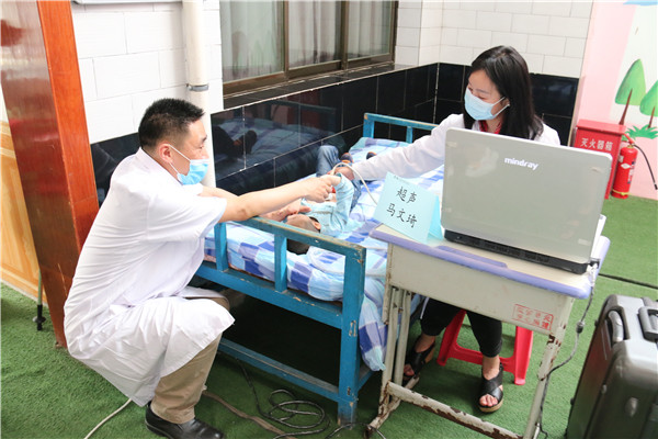 高陵"手牵手"儿童特教中心现有22名特教儿童,均存在不同程度生理缺陷、心理障碍,症状反复,需要特教中心老师全天候精心照料。特教中心多名工作人员也因此积劳成疾,时有身体不适。当前疫情常态化管理下,特教中心儿童及工作人员外出就医多有不便,二附院支社了解到这一情况后,决定在助残慰问的同时,积极送医上门,主动进行义诊活动。社员们特意带上血压计、血糖仪、听诊器等医疗器械以及防护物资,社员马文琦更是不辞辛苦专门带着便携式B超机,一起为特教中心儿童、工作人员及闻讯赶来查体的村民等30余人提供专业的医疗服务,受到当地人民群众一致赞扬。