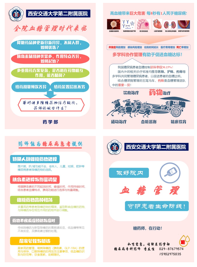 血糖异常对住院患者临床预后具有不容忽视的影响,多学科综合管理有助于血糖达标。为了更好服务临床和患者,药学部选送李友佳药师于2020-2021年在南京医科大学附属鼓楼医院进修内分泌专业1年,现为广东省药学会全院血糖管理“糖药师工作坊”认证师资。目前主要参与围术期、特殊人群等患者降糖药物的选择,血糖影响药物鉴别、联用风险防控及优化等工作,成效显著。