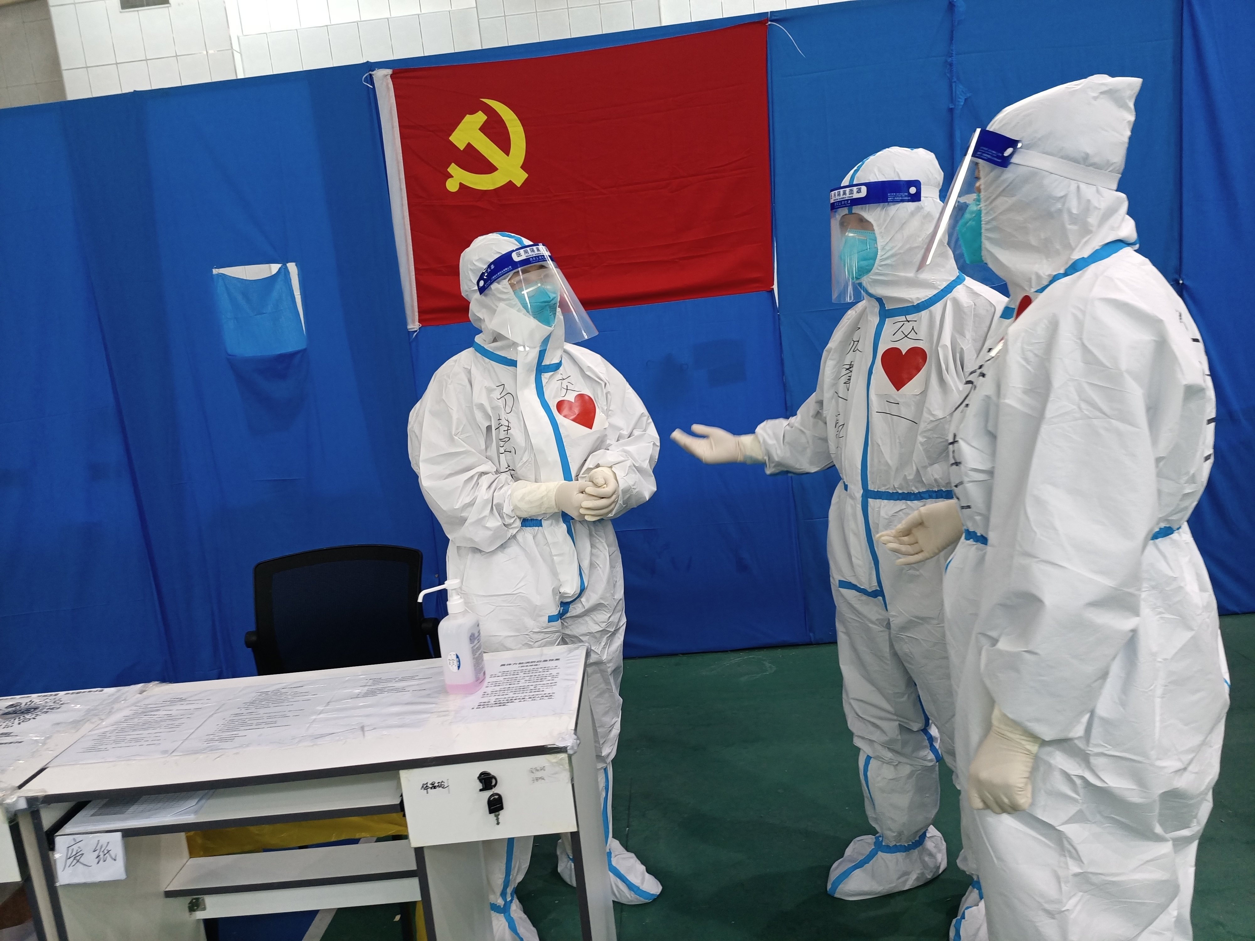 为了夯实支部工作,临时党支部下设5个党小组,由医疗组长和护理小组长担任党小组长,以党小组为基本单位开展党员的教育管理、宣传引领,党建和业务双融合,充分发挥基层党组织的作用和党员在抗疫一线工作中的先锋模范带头作用。要求党员同志在日常工作中佩戴标志,亮明身份,勇于争先,勇挑重担,敢于斗争,做好表率,自觉接受群众监督。