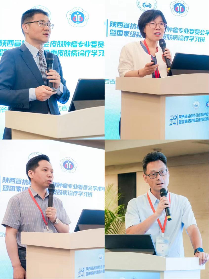 (左上中国医学科学院皮肤病研究所张韡教授、右上山东第一医科大学附属皮肤病医院刘红副院长、左下上海市皮肤病医院张国龙教授、右下中南大学湘雅医院彭聪教授)