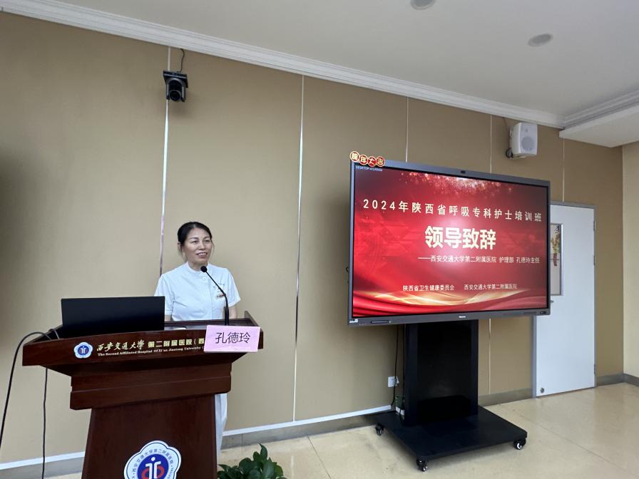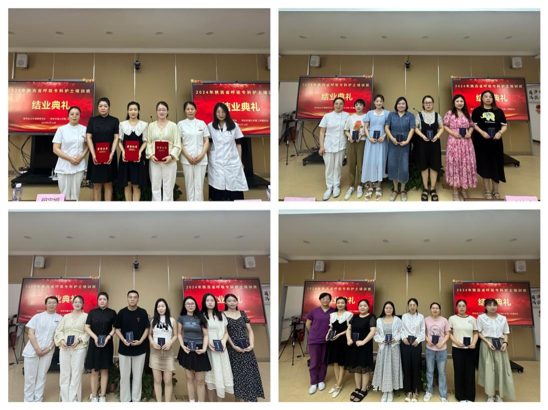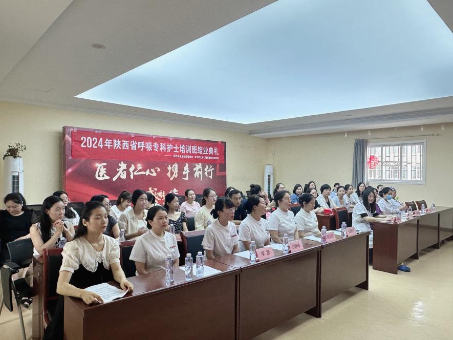 2024年06月14日上午,由西安交通大学第二附属医院承办的陕西省第三期呼吸专科护士培训班结业典礼在西一楼5楼会议室举行。参加结业典礼的有护理部孔德玲副主任、呼吸与危重症医学科明宗娟副主任、周淑如护士长、刘艳琴、胡佚凡、刘丽萍副护士长,培训班杨姣班主任、专科培训班带教老师及学员共计40人,结业典礼由班主任杨姣主持。
