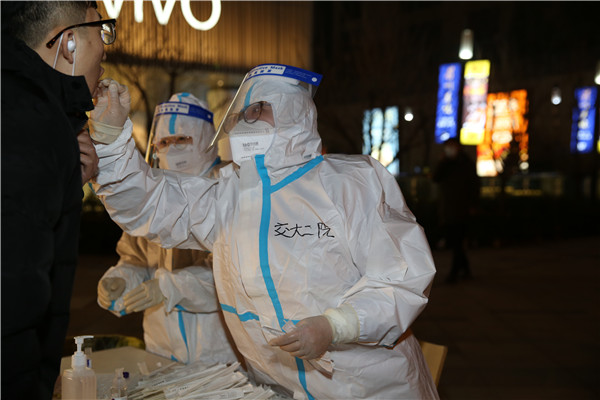 根据雁塔区统一安排,本次二附院核酸采样队医护人员将负责曲江创意谷、龙湖星悦荟、大悦城等13个采样点工作。市民们有序排队,队员们冒着严寒,顾不上吃饭喝水,持续工作,一直忙到凌晨,将采样任务完成,将采样点的垃圾处置干净才回酒店休息。截止16日凌晨,共采集13224人次。采样队员马忆楠说:“今天听见最多的是谢谢您,辛苦了!虽然吹着冷风但是心里很暖。”