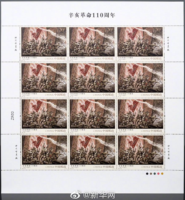 中国邮政10日发行《辛亥革命110周年》纪念邮票一套1枚,全套邮票面值1.20元。邮票计划发行数量为670万套。