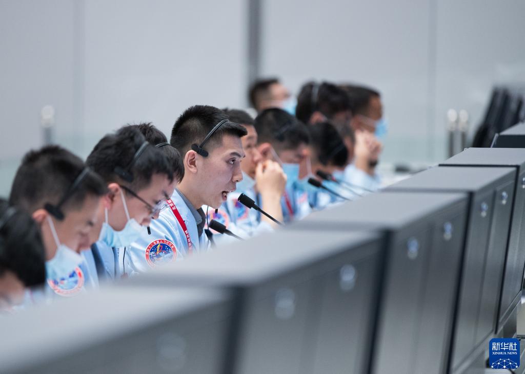 在北京航天飞行控制中心,科研人员在监测神舟十二号载人飞船与天和核心舱自主快速交会对接情况(6月17日摄)。新华社记者金立旺 摄