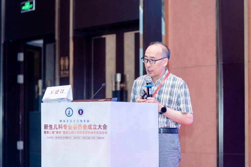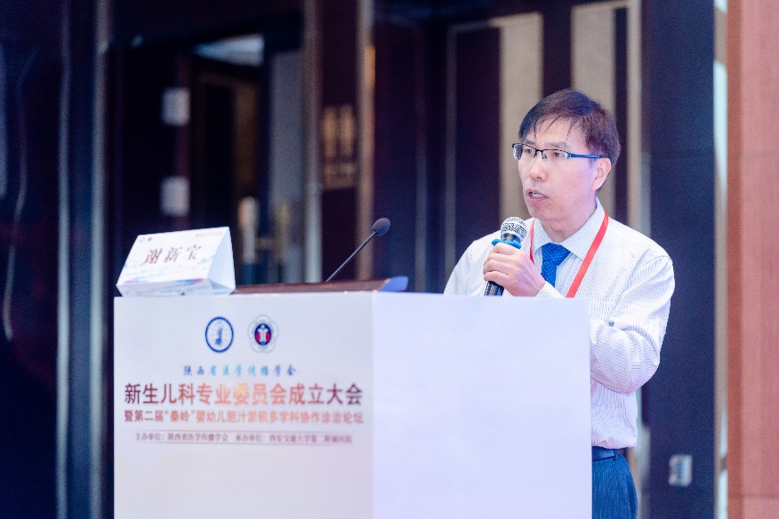 陕西省医学传播学会常务副会长兼秘书长王维君致辞:“近年来陕西省开展的新生儿疾病防治各项工作取得了一定的成绩,在提高大众健康意识、提高基层新生儿医师诊疗救治水平方面还有进一步提升空间。新生儿专业委员将会在促进学术交流、资源整合、科普宣传等方面发挥重要的作用”。