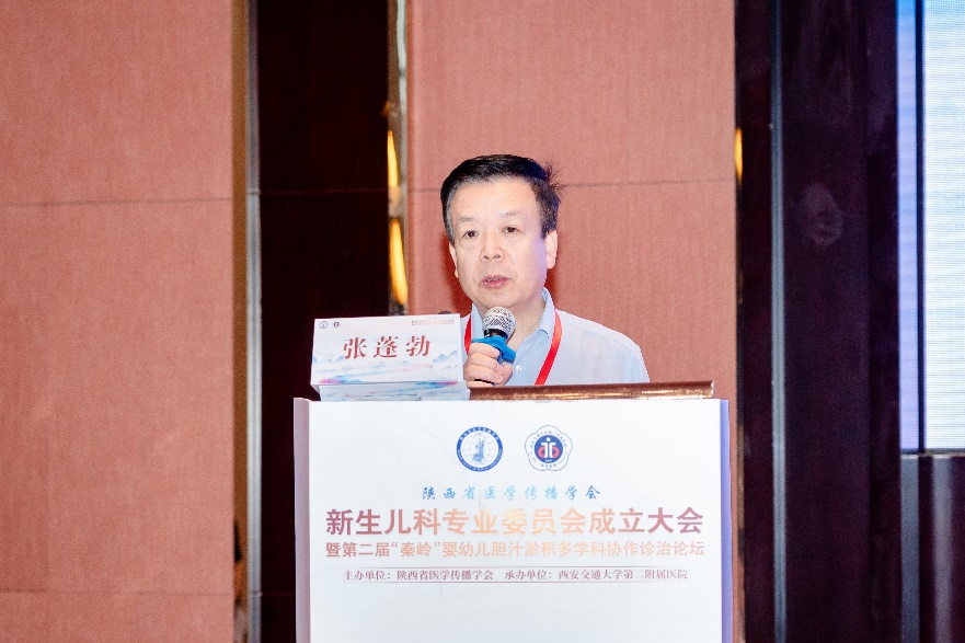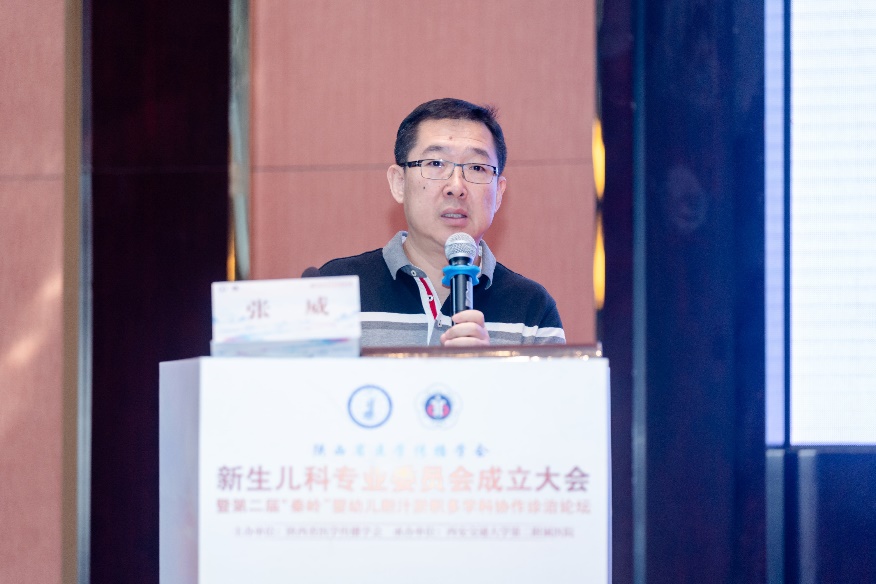西安交通大学第二附属医院副院长张蓬勃致辞,他首先表示热烈欢迎协会领导与各界专家的到来,并表示儿童是国家的未来、民族的希望,儿童强则国家强,我们愿意并期待借助学会平台,凝心聚力,共谋发展,携手合作,共同发挥特色优势,推动陕西省,西部地区新生儿专业发展!