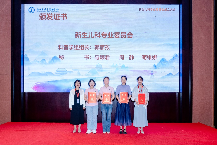 陕西省医学传播学会会长李宏杰,西安交通大学第二附属医院副院长张蓬勃,陕西省医学传播学会常务副会长兼秘书长王维君,西安交通大学第二附属医院王惠萍教授,西安交通大第一附属医院刘俐教授,中国新生儿科医师终生成就奖获得者戴英达教授,复旦大学附属儿科医院王建设教授、谢新宝教授,陕西省医学传播学会常务副秘书长杨俊超等领导、专家出席大会,成立大会由空军军医大学唐都医院江逊教授主持。