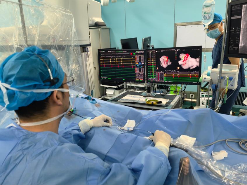 另一患者张某,男,65岁,患有“阵发性房颤”,由我院心血管内科王洪涛副主任医师、孙阳医师、刘尊护师组成团队,术前缜密讨论,确保手术的圆满成功。仅用时11分钟即完成肺静脉电隔离,而传统射频消融一般需用时30-40分钟。手术全程不到2小时的脉冲电场消融,患者的心律恢复并维持了窦律,目前患者恢复情况良好。