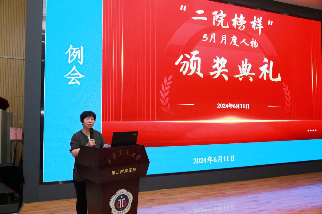 为营造全院将比学赶超融入实际工作,以奋发有为、积极进取的精神面貌迈向新征程,以“二院榜样”评选为契机,以榜样引领促进全面进步。6月11日下午,院党委在南院多功能厅举行了2024年“二院榜样”5月月度人物表彰大会,大会由党委副书记党变玲主持。
