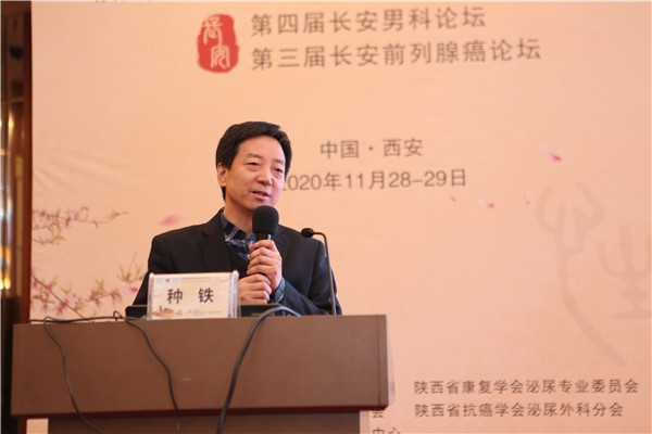 陕西省保健学会性医学专业委员会主任委员、中华医学会泌尿外科分会常务委员、陕西省康复医学会泌尿专业委员会主任委员、陕西省抗癌学会泌尿外科分会主任委员、陕西省泌尿外科质量控制中心主任、西安交通大学第二附属医院泌尿外科主任种铁教授作为大会主席,对学会各位领导、全体委员以及各位参会专家对性医学委员会成立,以及本次学术大会的大力支持表示衷心的感谢。向大家介绍了近年来我国性医学事业在全国范围以及省内发展情况,为了推动全省性医学事业的发展,向与会专家展示了西安交通大学第二附属医院泌尿外科男科学亚专业组成立8年来的优异成果,并进行了详细的经验分享。性医学是一门古老而年轻的学科,因历史及传统原因,其学科范畴一直涵盖泌尿外科学男科学。近年来人们对两性健康的要求日益提高,男科作为性医学的一个重要亚专业也有了长足发展。我院泌尿外科作为国家重点学科,一直重视男科学的建设和发展,先后派出多名骨干医师到国内外顶级男科中心访问、培训学习,培养了一支专职或兼职从事男科学专业的专家团队,多名专家分别担任中华医学会男科学分会常委和青年委员会副主任委员,陕西省医学会男科学分会副主任委员、常委和委员,在国内和省内拥有广泛的学术影响力。8年来,我科已成熟开设独立男科门诊和独立男科专业组,先后引进了阴茎夜间胀大测试仪、彩色多普勒超声、全自动电脑精液分析仪、生物反馈治疗仪等先进诊疗设备。同时成功开展了多项尖端男科手术,如:显微精索静脉结扎术、显微输精管吻合术、显微输精管附睾吻合术、精囊镜技术、射精管口切开术、阴茎弯曲矫正术、尿道下裂尿道成形术、隐匿性阴茎矫正术等,达国内先进水平。在男科学领域,我科长期致力于“环境内分泌干扰物对雄性动物或男性生殖健康的影响”、“睾丸组织立体培养及其应用”、“精子发育的蛋白调控”和“早泄发生机理”等方向的研究,先后承担国家自然科学基金项目2项,省部级科研项目5项,发表论文40余篇,其中SCI论文近20篇,参编《男科学》和《男科手术学》专著2部,中华医学会男科学分会《男科疾病诊断治疗指南》3部。自2017年开始,在中国性学会和中华医学会男科学分会的支持下,我科全力打造了“中国男科长安论坛”区域高端学术会议交流平台,开办了每年两期为期一周的“男科显微微创技术培训班”,在区域乃至全国产生了广泛影响,为推动陕西和西北地区的男科学发展做出了积极贡献。