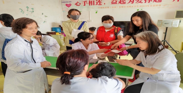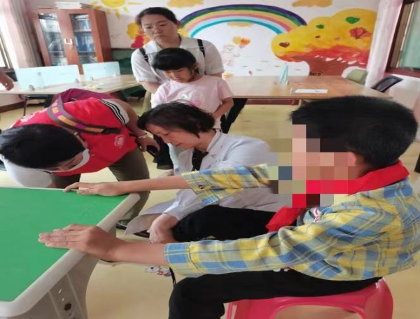 高陵“手牵手”儿童特教中心特教儿童均存在不同程度生理缺陷、心理障碍,症状反复,需要特教中心老师全天候精心照料。多数特教儿童仍在治疗中,由于患儿的性质,特教中心儿童及工作人员外出就医诸多不便,二附院支社了解到这一情况后,我院儿科、神经外科等相关科室社员积极送医上门,主动进行义诊活动的同时,通过微信平台随时随地为患儿提供在线诊疗服务。社员们特意带上听诊器、血压计等医疗器械为特教中心儿童提供专业的医疗服务,特别是黄绍平教授百忙之中前来为患者逐一诊疗,对患者目前治疗状况及后期治疗均给出详细诊疗方案,受到特教中心魏红霞校长等特教中心人员及特教儿童家长的一致赞扬。