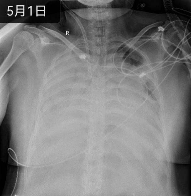 4月的最后一天深夜,呼吸与危重症医学科杨拴盈主任接到来自陕北基层医院的求助电话,希望转诊一名35岁女性患者。该患者既往患有系统性红斑狼疮,曾因狼疮脑病和狼疮肾炎进行激素冲击治疗,长期服用激素和免疫抑制剂,已出现药物相关严重不良反应。更为致命的是2天前患者感染了甲型流感病毒,导致病毒性肺炎,呼吸困难迅速进展,胸片显示双侧“白肺”,属于免疫抑制宿主重症肺炎、ARDS。了解病情后,杨拴盈主任迅速安排RICU医护人员为患者开通绿色通道,准备床单元和呼吸机,患者于深夜紧急送入RICU病房。入院后明宗娟教授、单虎、马玉婉医生立即组织抢救,给予气管插管、镇静镇痛肌松、有创机械通气支持,但彻夜的奋战没能换来病情的平稳,纯氧呼吸支持下指脉氧不足50%,酸中毒难以纠正,呼吸机参数已无调整空间,监护仪持续报警,血气分析的二氧化碳分压一路飙升,患者呼吸循环功能处于崩溃边缘,生命垂危。