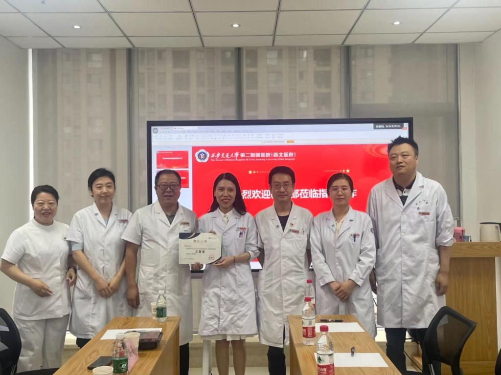 此次调研活动还重点关注了心血管内科的进修生工作。主管康复进修工作的秦曙光老师对进修工作进行了全面而深入的总结。她详细介绍了科室在吸引和培养进修生方面的具体做法和经验,包括制定详细的进修生培养计划、提供丰富的临床实践机会、加强学术交流和合作等举措。秦老师还分享了一些成功的进修生培养案例,这些案例不仅展示了科室在进修生工作方面的成果和特色,也为其他科室提供了宝贵的经验和借鉴。进修学员认真反馈了在心脏康复中心学习中的深切感触,并表达了今后进一步加强与交大二附院心内科合作交流及大力发展本科室心脏康复的想法与展望。青海省心脑血管病专科医院吴晓峰副主任医师、陕西中医药大学附属第一医院心内科魏晓峰主治医师分享了在我科心脏康复中心进修的感触与体会,进一步明确了心脏康复在慢病治疗中的重要地位,并纷纷表示拟将我院的先进技术和严谨医疗的精神带回本科室,希望借此和我院搭建友谊桥梁,促进各项医疗、教学及科研工作的合作共赢。