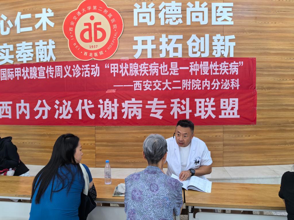 每年5月25日所在的一周为国际甲状腺知识宣传周,是由国际甲状腺联盟发起的全球范围内的甲状腺知识宣传活动。值此宣传周,为提高公众对甲状腺疾病的认识和关注,2024年5月24日上午,我院内分泌代谢科在甲状腺周期间成功举办了大型义诊活动。