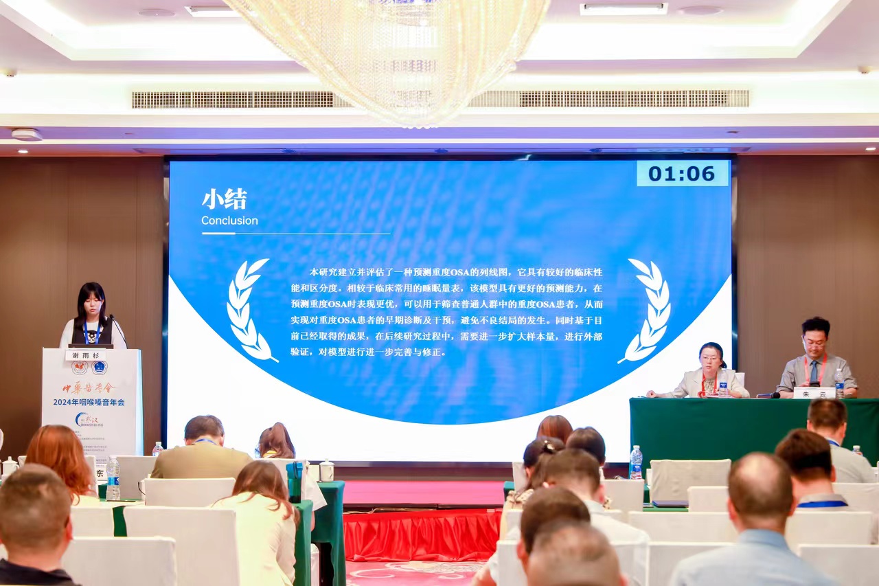 任晓勇主任对《复杂乳头状瘤的处理》进行了大会报告,团队另有圆桌讨论1场,大会发言6场,手术视频演示2场,壁报10余篇,其中1篇被大会评为高质量壁报。嗓音学组委员、侯瑾副主任医师参与了《嗓音康复治疗应用》单元的圆桌讨论;罗花南主任医师、侯瑾副主任医师、张亚副研究员、刘小红主管技师、谢雨杉研究生、周雅诺研究生分别就《咽喉反流NBI内镜诊断新进展》《基于频闪喉镜视频的声带病变人工智能模型初步病变研究》《儿童急性喉炎雾化给药气溶胶动力学研究》《累及前联合的早期声门型喉癌患者支撑喉镜CO2激光术后白膜夹取对预防声带粘连的作用研究》《重度阻塞性睡眠呼吸暂停风险预测模型的建立与评价》《机器学习模型在预测成人重度睡眠呼吸暂停综合征综合风险中的应用和解释》等做了专题和大会发言。孔德敏主管护师的《67例功能性失音患者嗓音训练治疗体会》被大会评为高质量壁报。