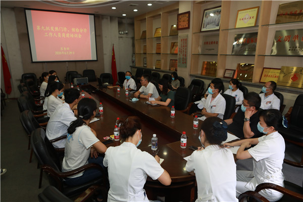 6月29日下午,在高亚副院长的指示要求下,医务部组织召开第九批预检分诊、发热门诊/单元工作人员岗前培训会。医务部刘明主任、同艳妮副主任,门诊办秦小金副护士长,以及相关医务人员参加会议。刘明主任主持会议。