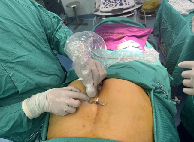 经术中超声辅助定位、术中测试,确认患者双侧S3神经感觉与运动应答均较差,左侧S2测试患者获得了“左侧臀部、大腿根部及肛门周边感觉良好应答、左侧足底跖屈反射刺激应答明确且无腓肠肌震颤、在增加脉宽后会阴部左侧区域感觉应答明确”,依据西安交大二附院“尿控与盆底修复”诊疗团队在完全脱离X线-B超辅助定位骶神经调控疗法个体化手术经验,术中确定选择患者左侧S2神经孔置入电极并确认深度并精准释放,术中最低测试电压0.5V,等待患者术后体验治疗24小时、完成X线电极定位复查,开始骶神经调控Stage1体验治疗。