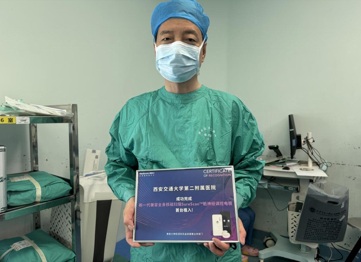 2024年5月22日,西安交通大学第二附属医院泌尿外科,由副院长种铁教授带领科室尿控与盆底修复诊疗团队,为一位76岁女性患者成功植入西部首例磁共振兼容骶神经调控电极,该新型电极具有可耐受全身3.0T及以下磁共振扫描之优势,让选择与接受骶神经调控疗法的患者不再受磁共振检查的限制。