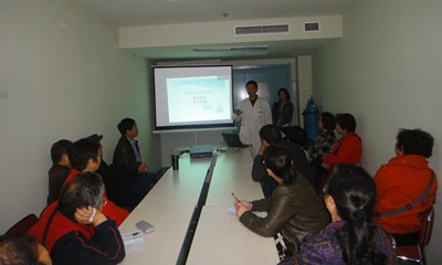 ? 为贯彻卫生系统创先争优及“三好一满意”活动、推进优质护理服务的进一步深入开展,结合我院团委“志愿者进病房”活动的要求,心内科于10月24日下午,举办了主题为“医患面对面,促进心健康——冠心病健康知识讲座”专题活动,由心内科董新教授担任本次主讲,共有三十多名患者及家属参加了这次学习。